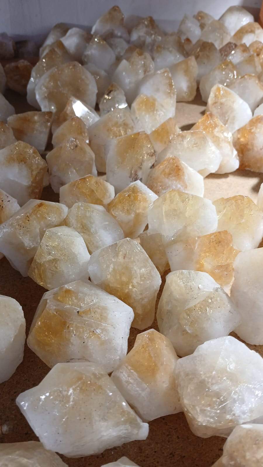 Puntas naturales de citrino en bruto que conservan su forma y textura original. Sus tonos amarillos dorados brillan con luz propia, aportando energía cálida y vibrante. Ideales para decoración, colección o prácticas energéticas enfocadas en la vitalidad y la prosperidad.