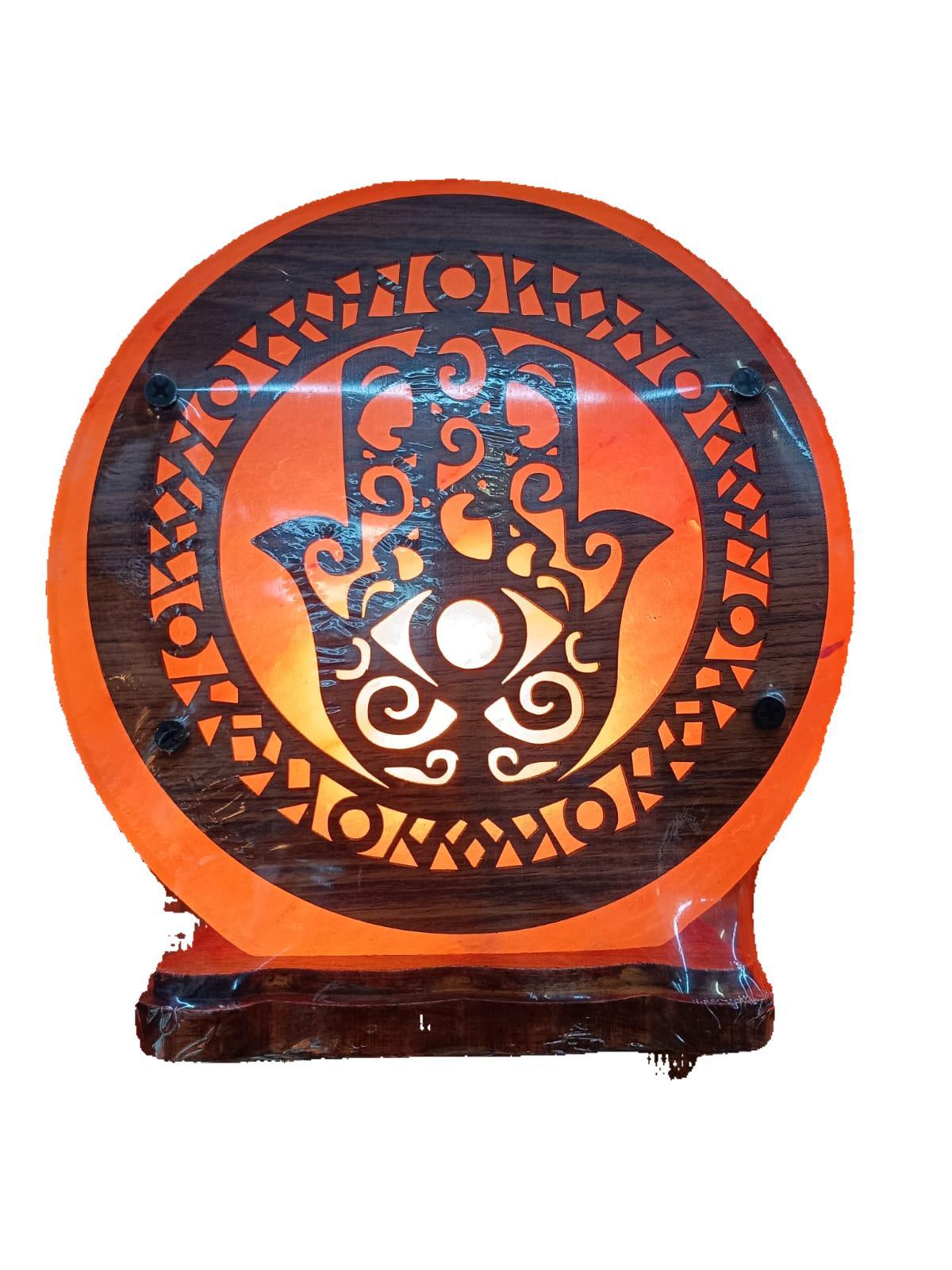 Esta lámpara está tallada con auténtica sal rosa del Himalaya e incorpora el símbolo de la mano de fátima. Su luz cálida y suave crea un ambiente natural y sereno, ideal para relajar y purificar cualquier espacio en tu hogar. Medidas: 22 cm de alto x 20 cm de ancho x 10 cm de profundidad. Peso aproximado: 4,5 kg.