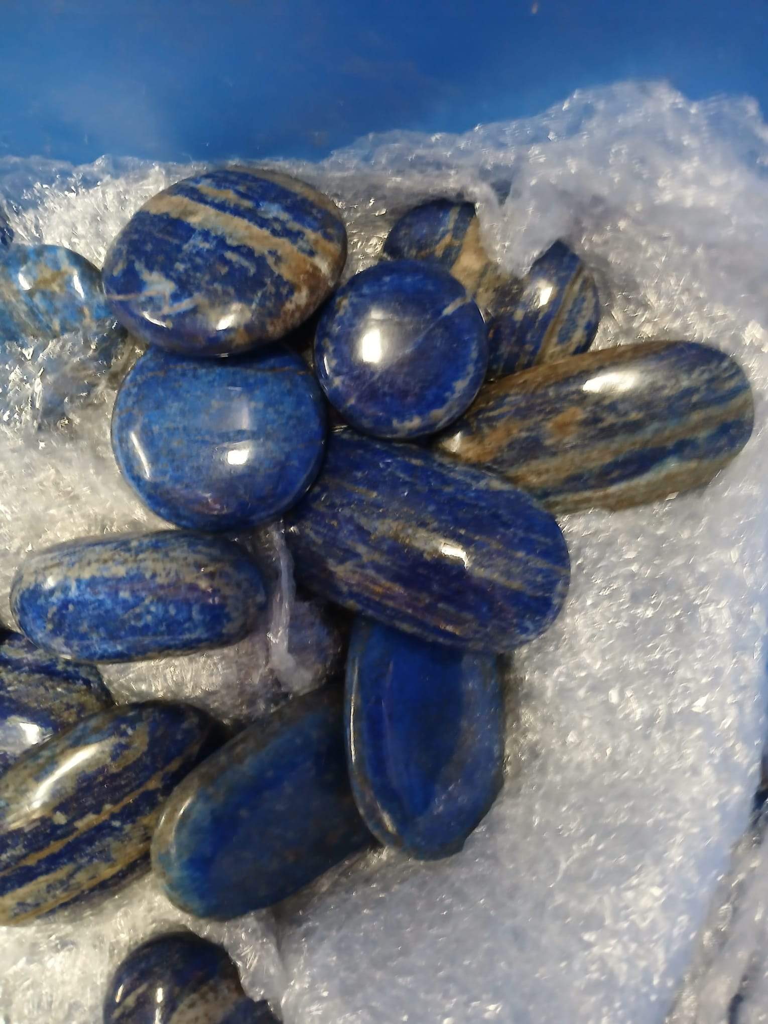 Lapislazuli pulido forma jabón, con colores y vetas naturales azuladas. Perfectas para decoración, colección o uso energético. venta por kg.»