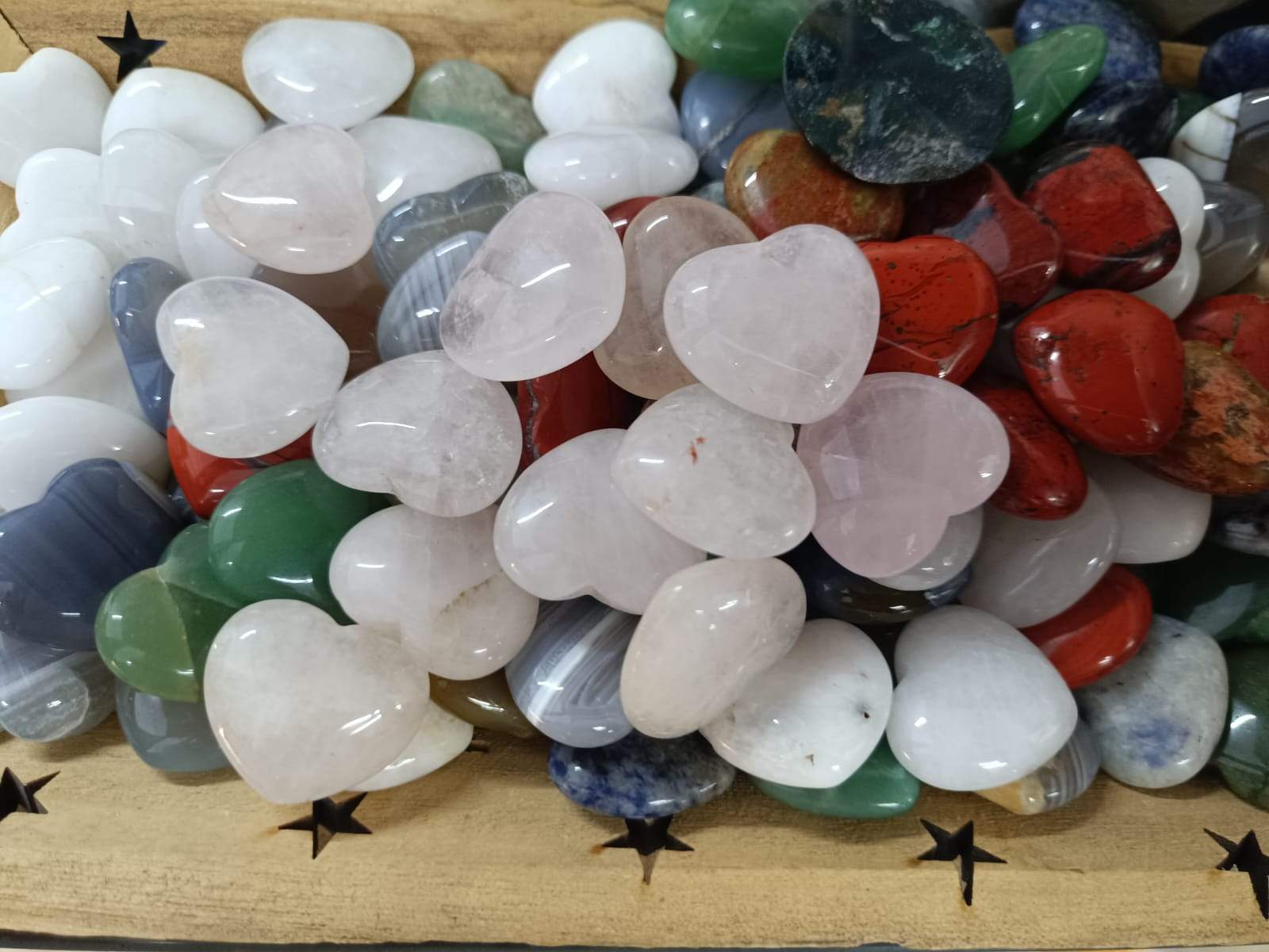 Selección de distintos minerales tallados en forma de corazones. Ideales para decoración, colección o uso energético.