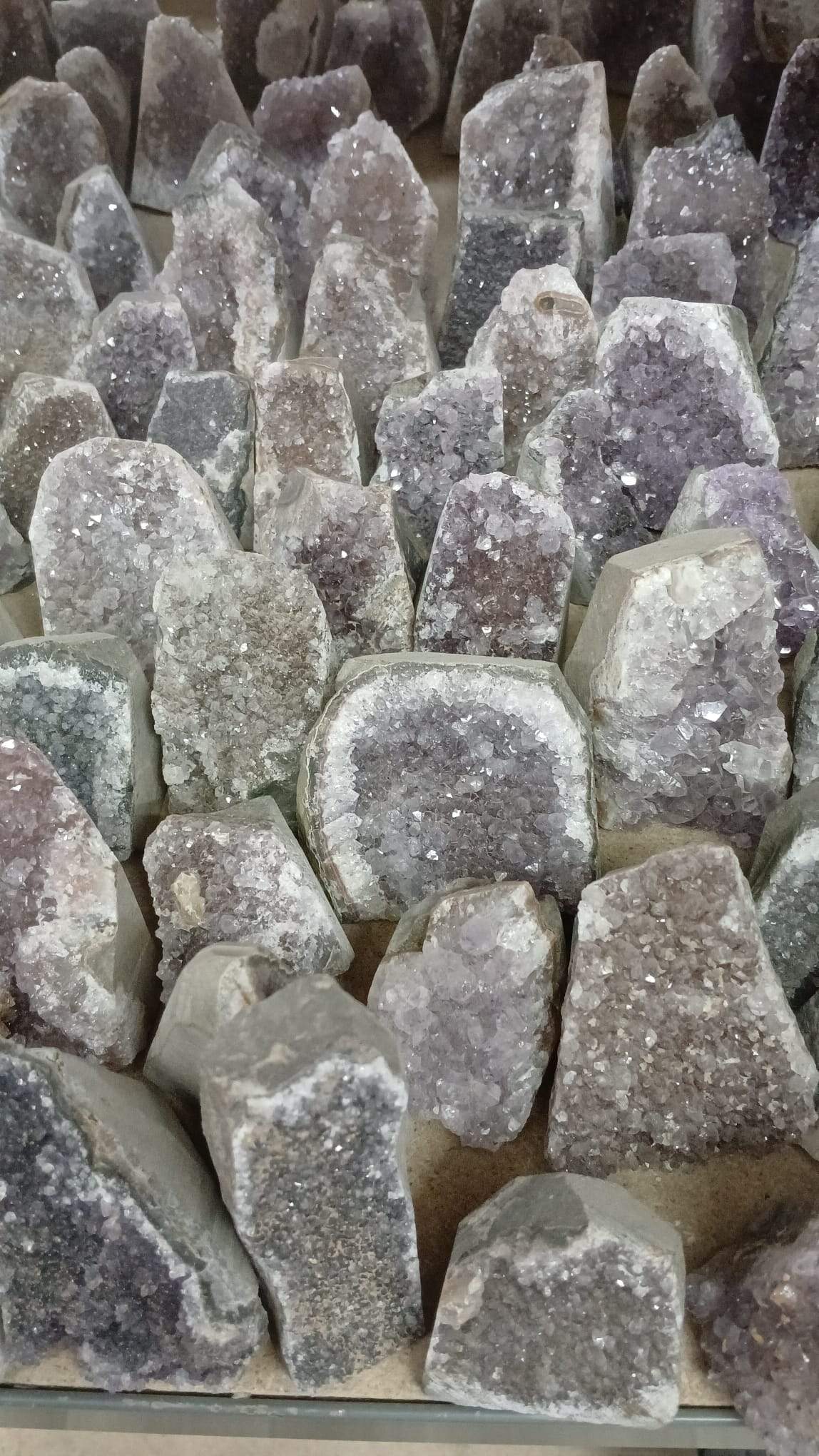 Pieza pequeña de amatista natural con base cortada Q4, que resalta la belleza de sus cristales violetas y su estructura cristalina. PRECIO POR KG. Amatista cutbase Natural MINI Q4″
