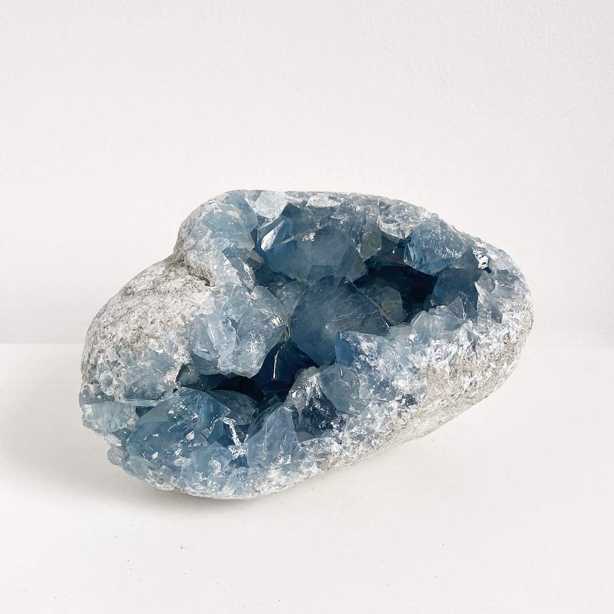 La celestina, o celestita, es un mineral conocido por su característico color azul, aunque también puede presentarse en tonos blancos, grises o rosados. Su nombre proviene del latín caelestis, que significa “celestial”.