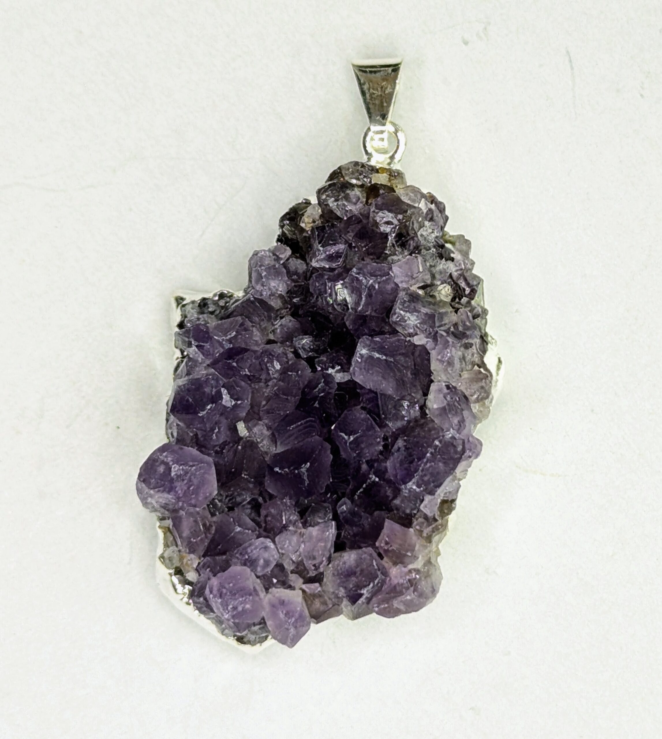 Colgante de amatista en bruto tipo drusa, con cabujón de plata. Energía, protección y claridad.