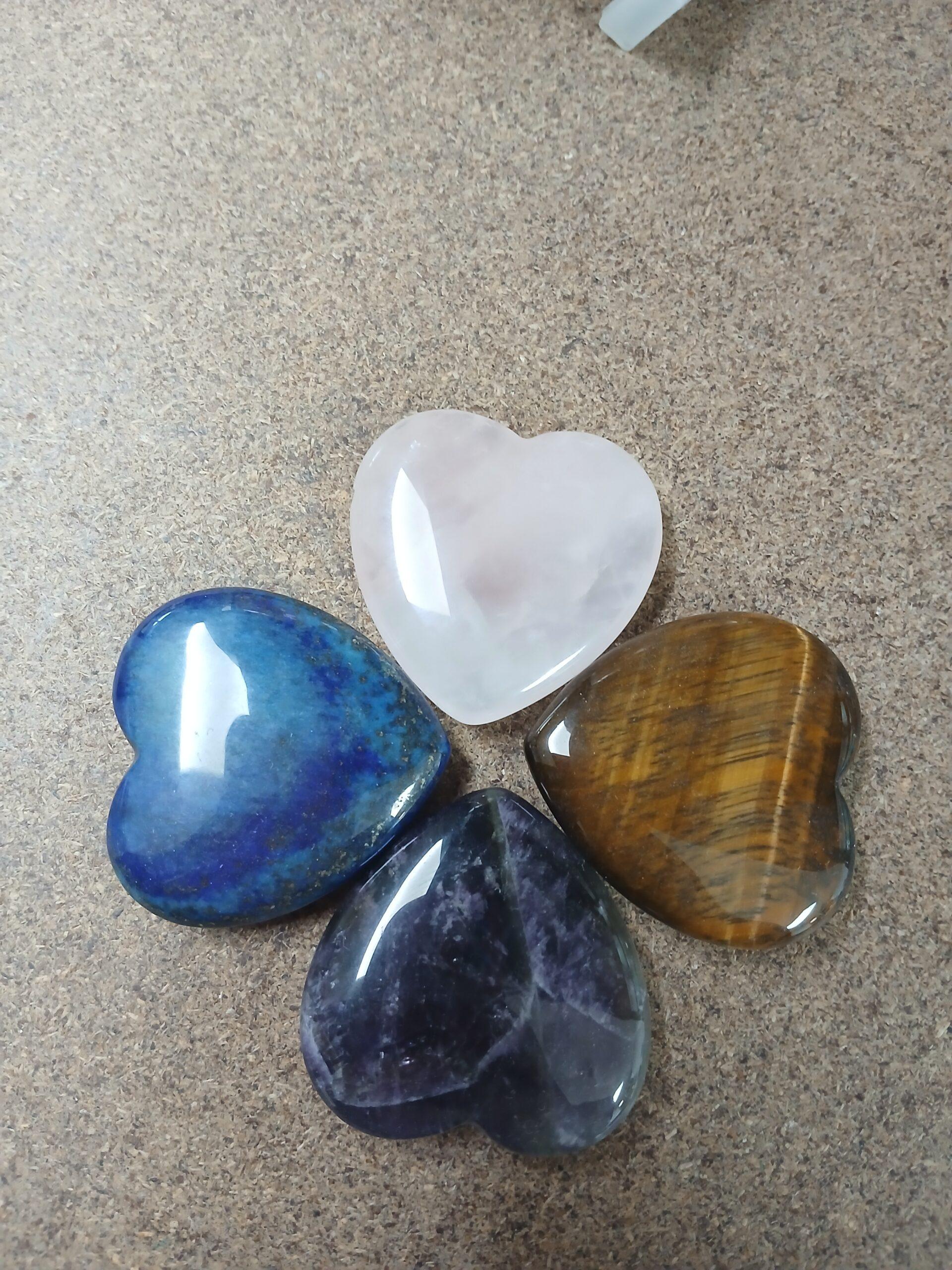 Corazones de piedras naturales pulidas (amatista, ojo de tigre, lapislázuli y cuarzo rosa), ideales para decoración o terapias energéticas venta por unidad»