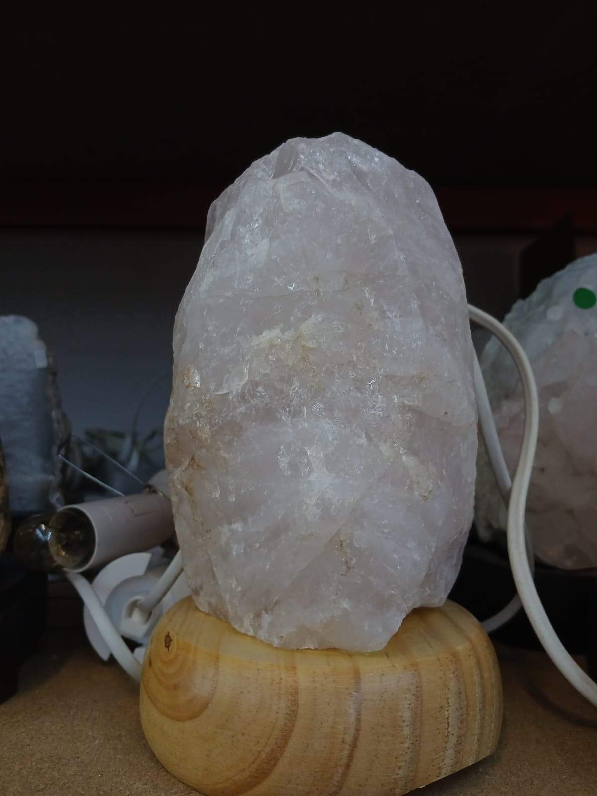 Lámpara elaborada con cuarzo rosa en bruto, resaltando la belleza auténtica del mineral.Su luz rosada y suave atraviesa el cristal, creando un ambiente luminoso y relajante. Ideal para decorar espacios y aportar energía limpia y armoniosa.