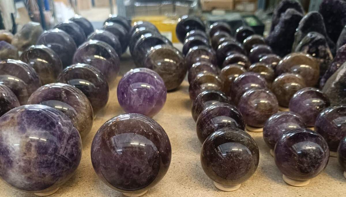 Esfera pulida de amatista con tonos violeta intensos y vetas naturales. Cada pieza es única y combina estética con propiedades energéticas asociadas a la calma y la protección. Ideal para decoración, meditación o colección.