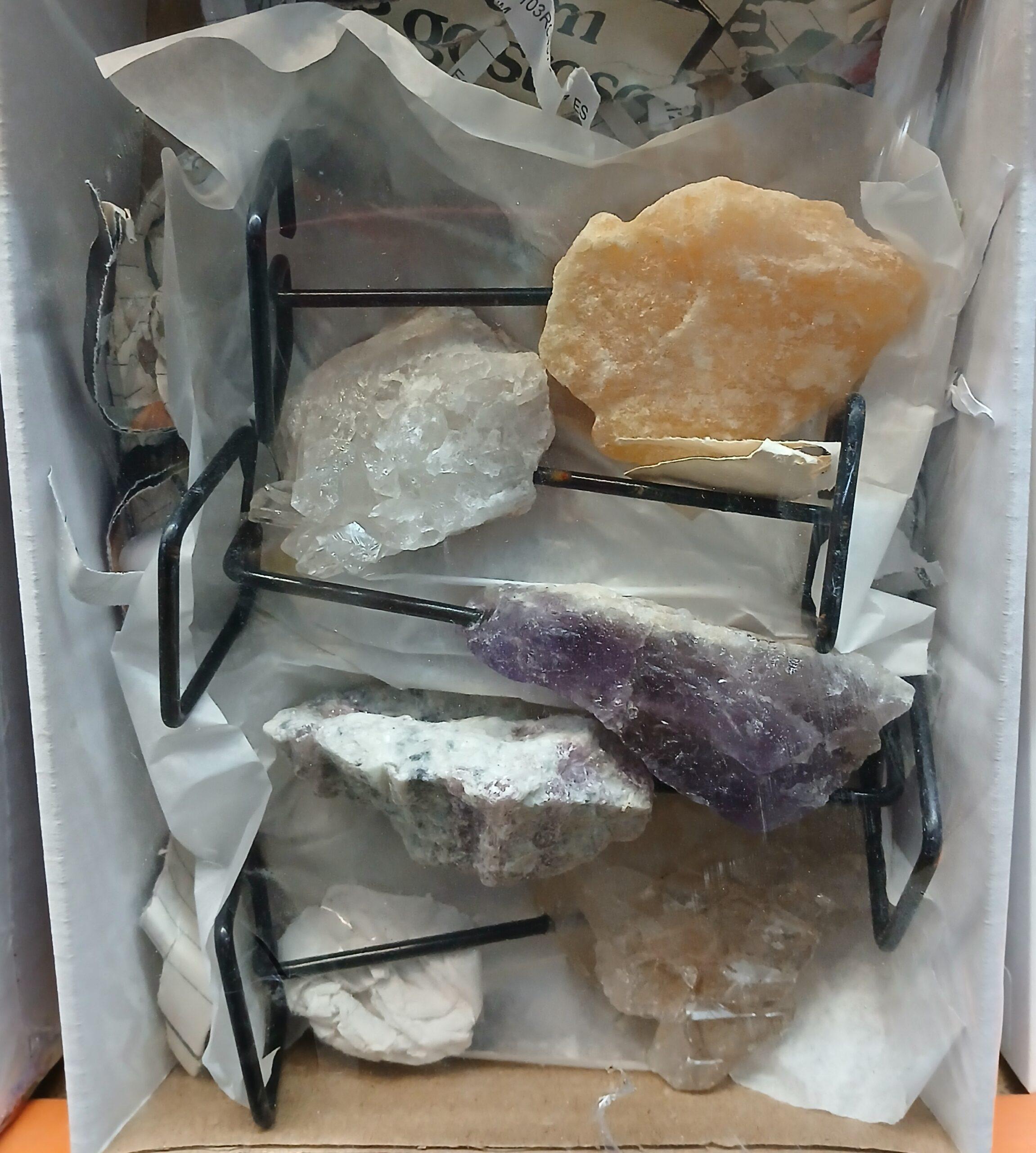 Selección de minerales naturales montados sobre bases metálicas planas, que realzan su belleza y permiten una exhibición elegante. Cada pieza es única, ideales para decoración, colección o uso energético enfocado en la armonización del espacio. PRECIO/UNIDAD»