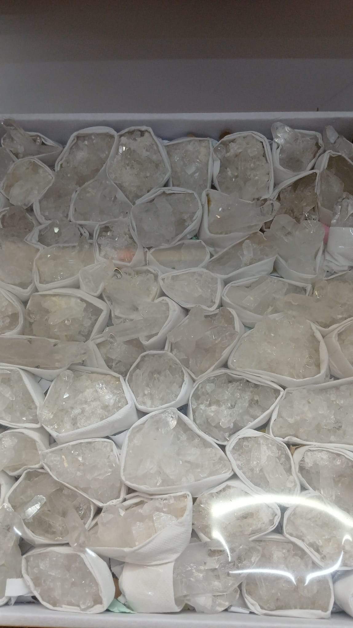 Caja de drusas y puntas de cuarzo blanco de 100-150 gramos / 2-4cm