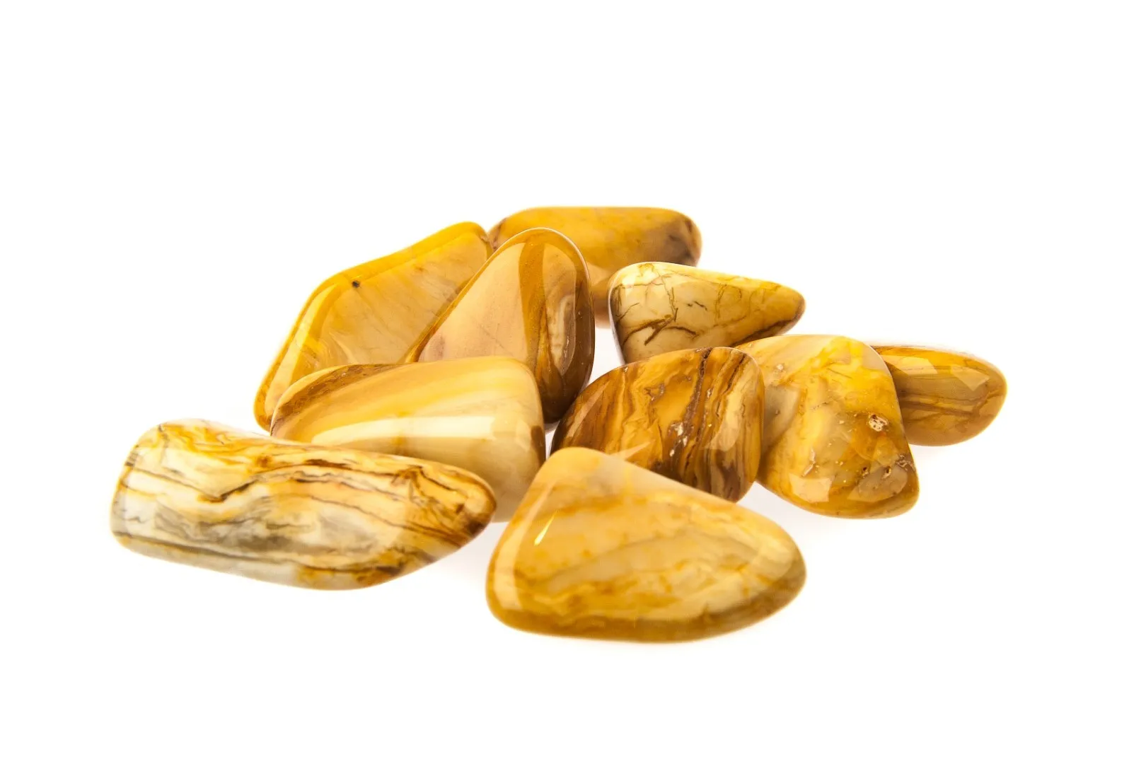 Jaspe amarillo natural en forma de piedra rodada, con tamaño entre 2-3cm.
