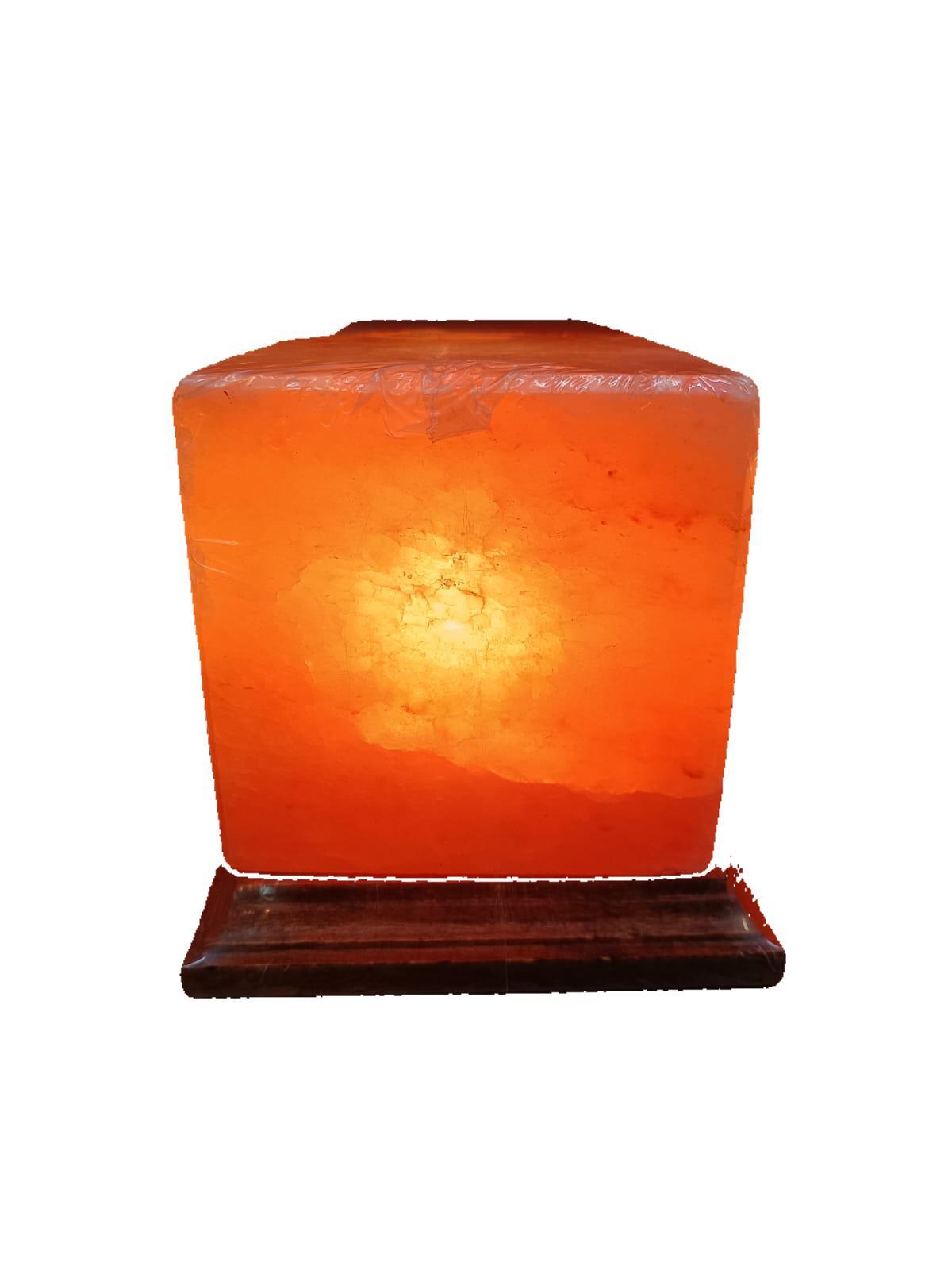 Lámpara de sal rosa del Himalaya tallada en forma de cubo. Su luz cálida y tenue crea un ambiente relajante y acogedor, ideal para decorar y purificar cualquier espacio.
