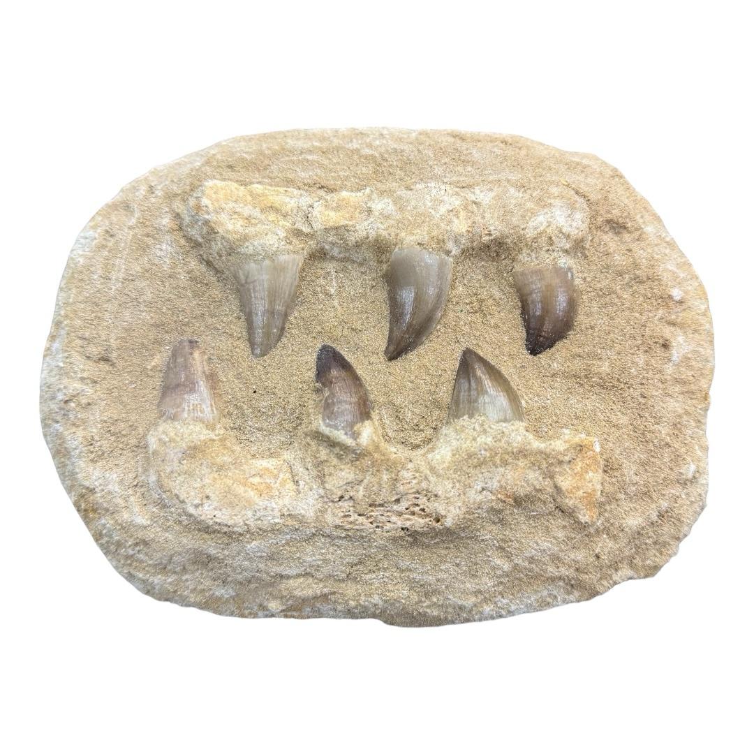 Mandíbula fósil de mosasaurio de gran tamaño, perteneciente a uno de los reptiles marinos más impresionantes del período Cretácico. Esta pieza única revela detalles anatómicos y dentales que evidencian su poderosa capacidad depredadora. Ideal para coleccionistas, museos y amantes de la paleontología que buscan una conexión directa con la historia prehistórica de la Tierra. «