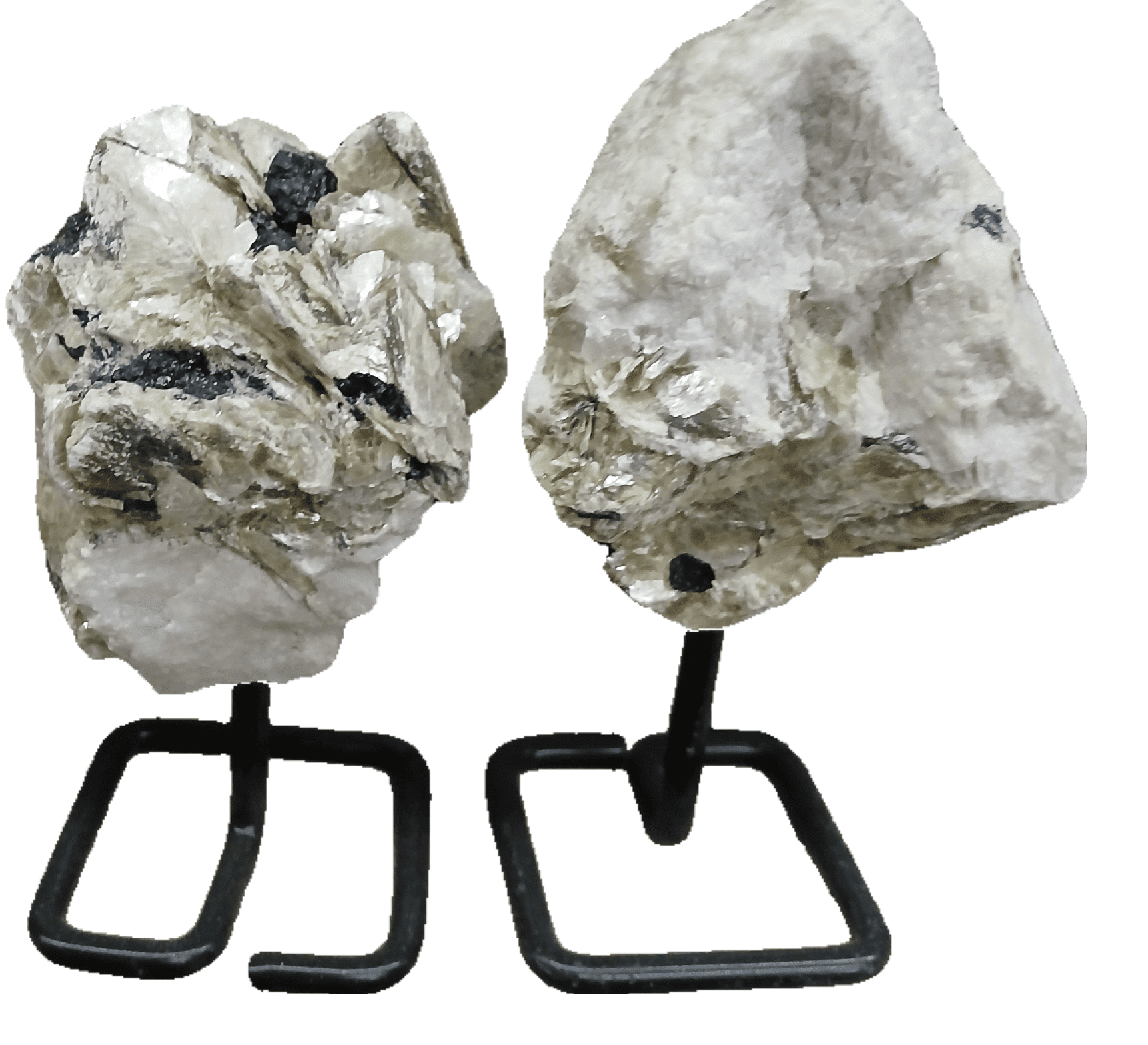 Pieza natural de mica oro en estado bruto, montada sobre una base de metal resistente que realza su textura cruda y auténtica. Ideal para decoración, protección energética y espacios con estilo rústico y moderno. MIXBM1BT PRECIO/UNIDAD