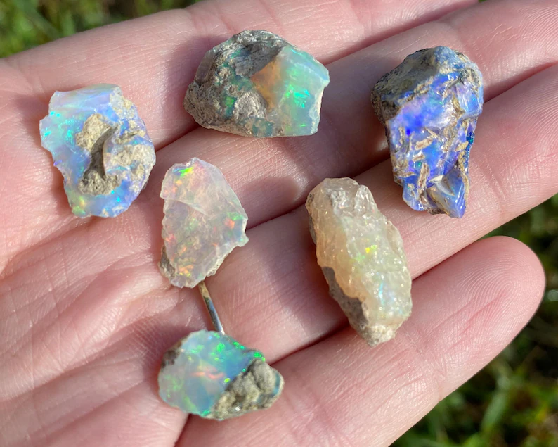 El ópalo es una gema preciosa conocida por su asombrosa capacidad de reflejar los colores del arcoíris en su superficie, un fenómeno llamado opalescencia. A diferencia de otras gemas que son cristales, el ópalo es un mineraloide, lo que significa que no tiene una estructura cristalina definida. Su composición química es dióxido de silicio hidratado, lo contiene entre un 5 y un 10 por ciento de agua. venta por kg.»