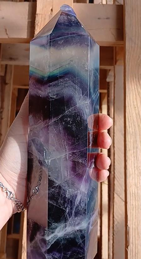 Prismas pulidos de fluorita con bellas combinaciones de colores como verde, violeta y azul. Cada pieza presenta vetas y transparencias únicas. Valoradas por su belleza natural y su energía asociada a la concentración y el equilibrio mental. Perfectas para colección, meditación o decoración.