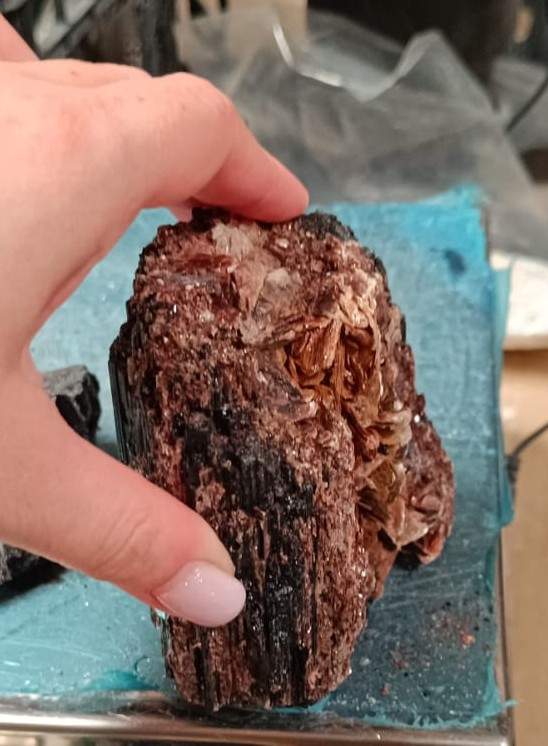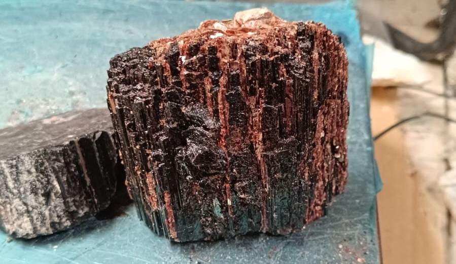 Piedra natural en estado bruto que combina la turmalina negra con cristales de ortosa, creando un contraste visual único entre la textura rugosa y los brillos cristalinos. La turmalina es reconocida por sus propiedades protectoras y energéticas, mientras que la ortosa aporta un toque estético y mineral adicional. Ideal para coleccionistas, decoración o como pieza energética para armonizar espacios.