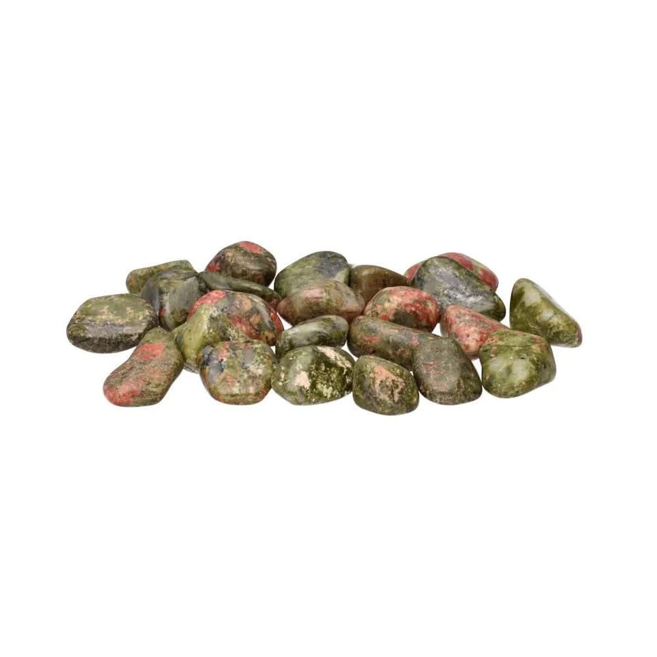 Unakita natural en forma de piedra rodada, con tamaño entre 2-3cm.